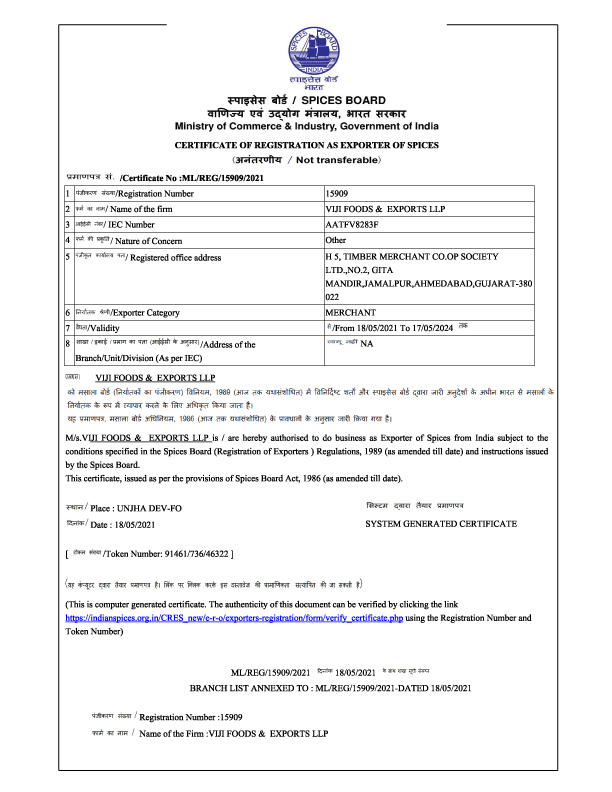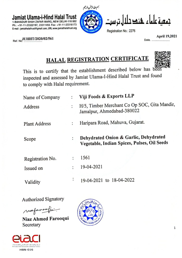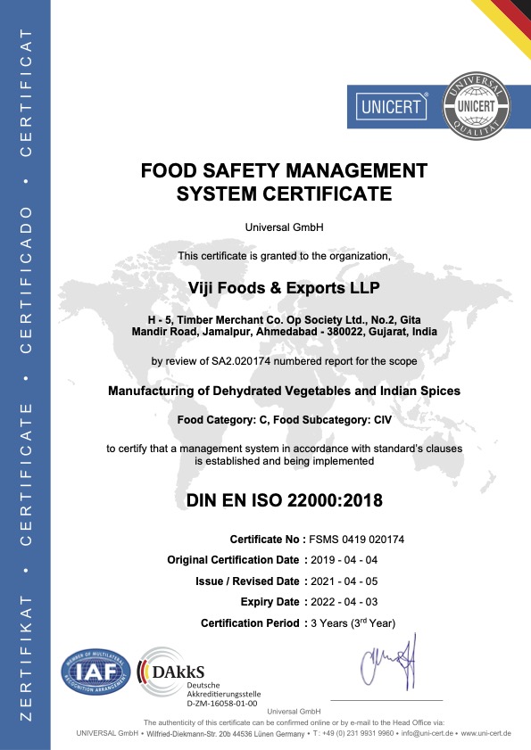 Quality is the topmost priority at Viji foods. Our company is certified by ISO 22000:2018, HALAL CERTIFICATE, SPICE BOARD OF INDIA, APEDA & HACCP. We have a dedicated quality control department which facilitates us to maintain our standards as per the USA and European market. Before delivering our products to the clients we make sure all the standards are met, the goods are in top-notch condition and packed properly. Our primary aim is to provide No.1 quality products and meet all the expectations of our prestigious clients. At Viji foods we have assorted machinery to control and maintain the quality from starting of the packaging to the end.